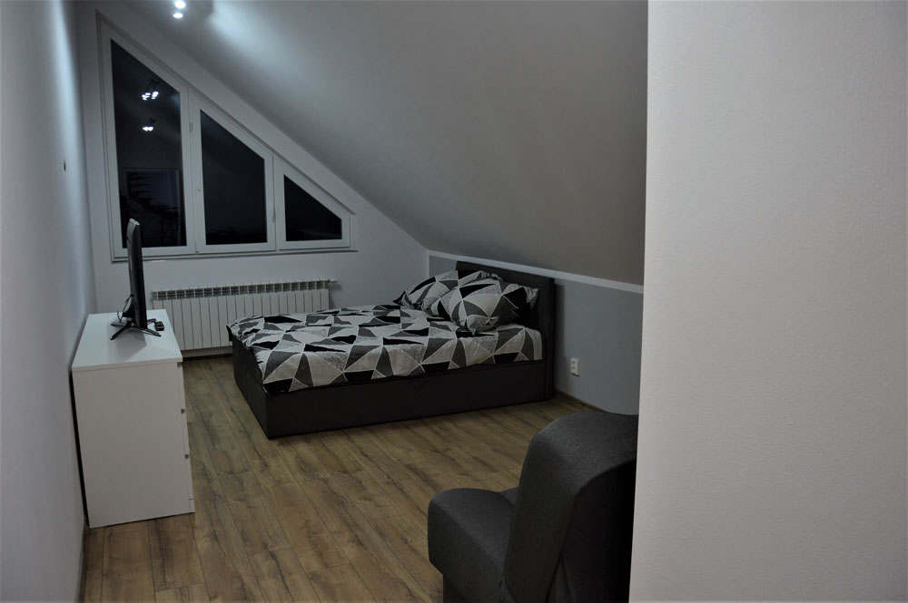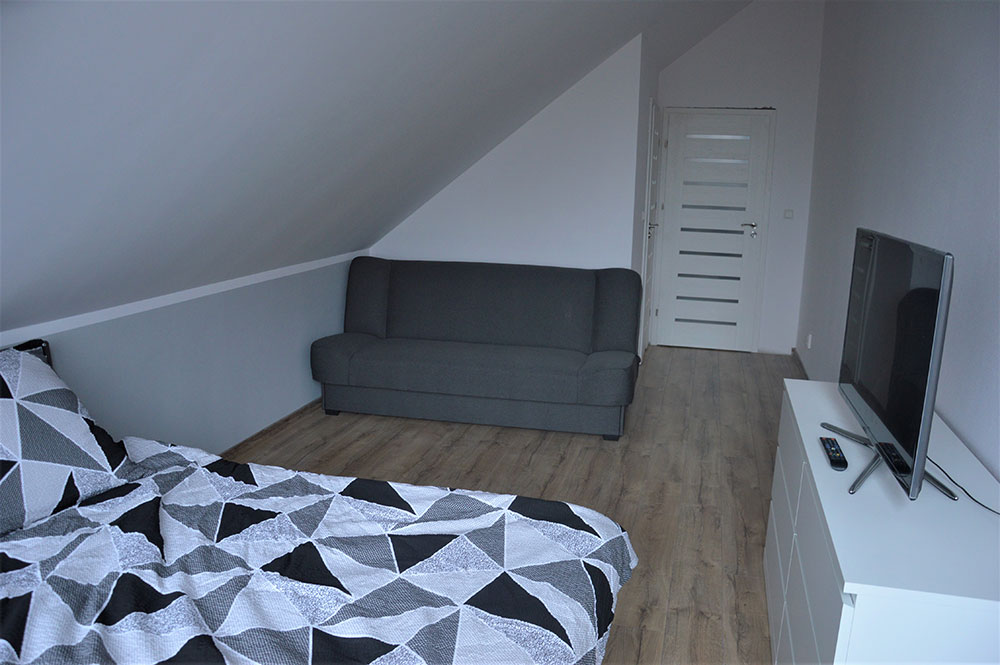 - 1 pokoj 4 osobowy z oddzielnym wejściem kuchnia i łazienka